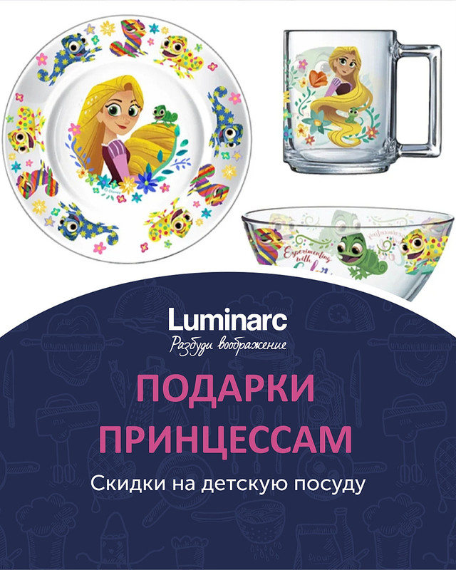 Индивидуальная детская посуда от Luminarc - настоящий праздник для детей! Особенно, когда она такая красивая, а еще - с рисунками любимых персонажей! Это безопасная посуда, которая будет радовать вашу крошку каждый день!